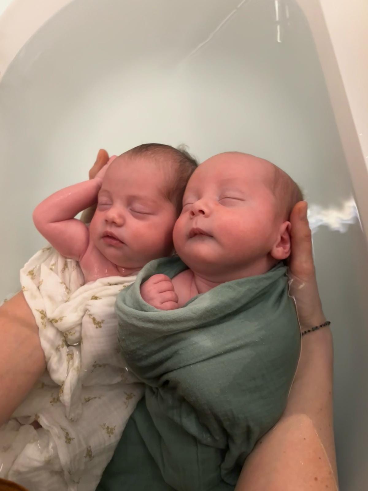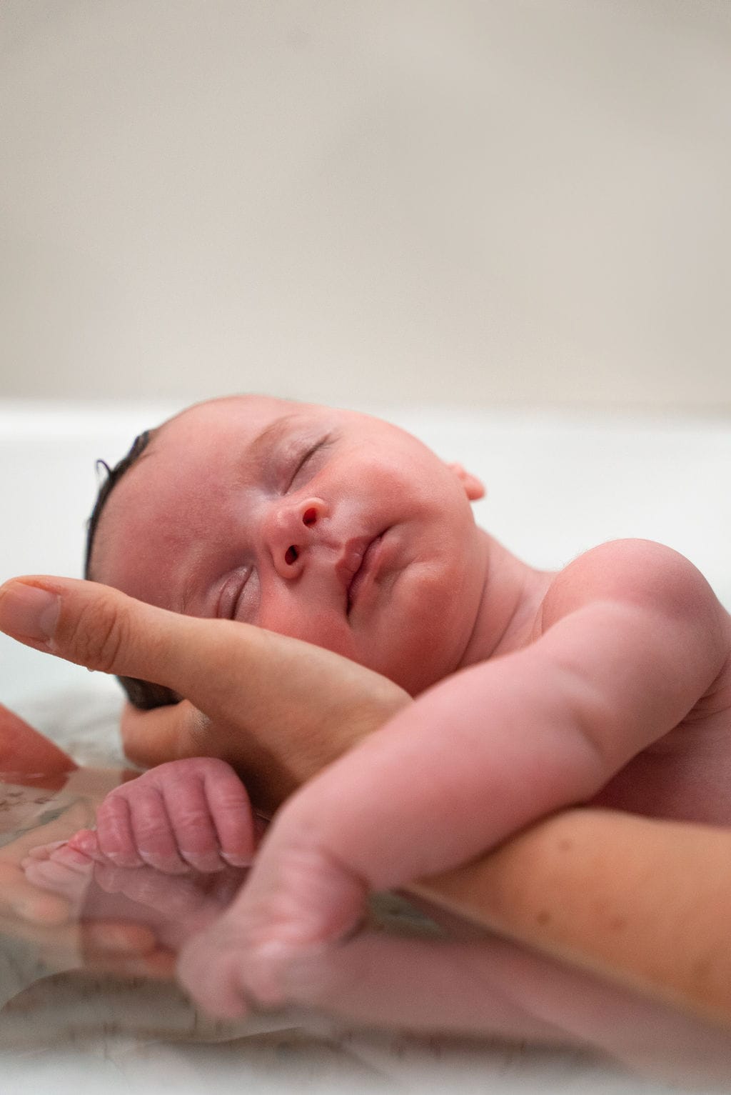 - beaucoup d’eau afin de recouvrir bébé au maximum pour reproduire cette immersion in utero,